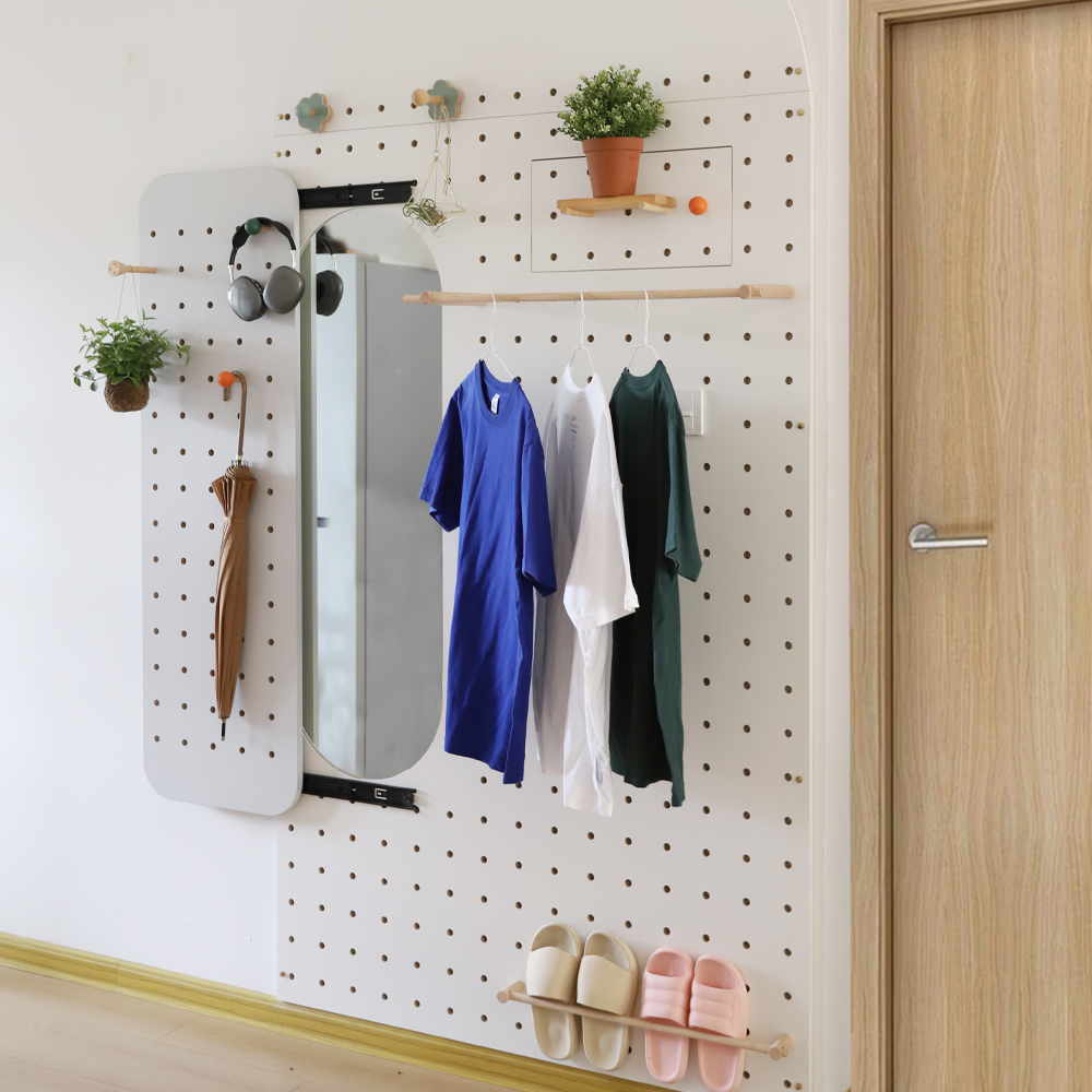 553小木良品洞板は玄関の入り口の白い壁面の実木部品の壁に木製に設置されています。
