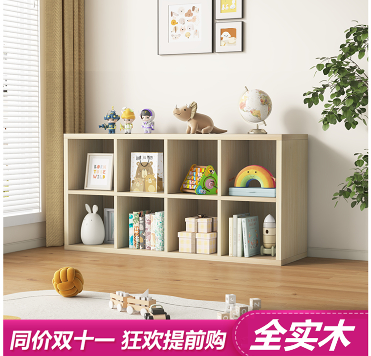 553子供本棚床置き自由組合せベッドサイドロッカー置物組合せ和風リビング八格キャビネット実木キャビネット
