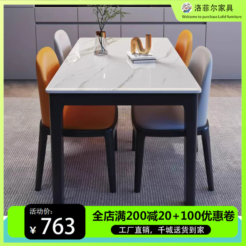 3e現代シンプル岩板長方形家庭用小戸型食卓と椅子の組み合わせ実木ホテルの食事テーブル