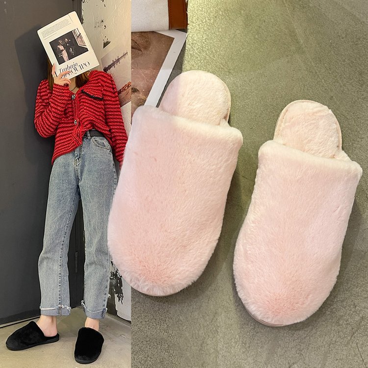名前の璐皮毛一体綿スリッパの女性秋冬2024新型家庭用保温毛パイル室内スリッパの女性