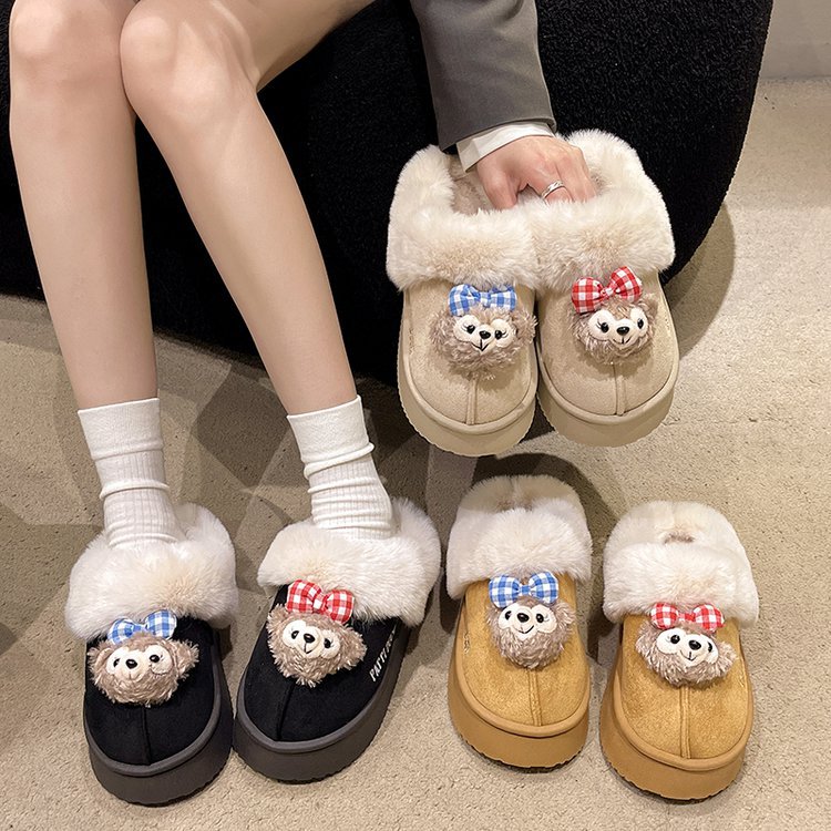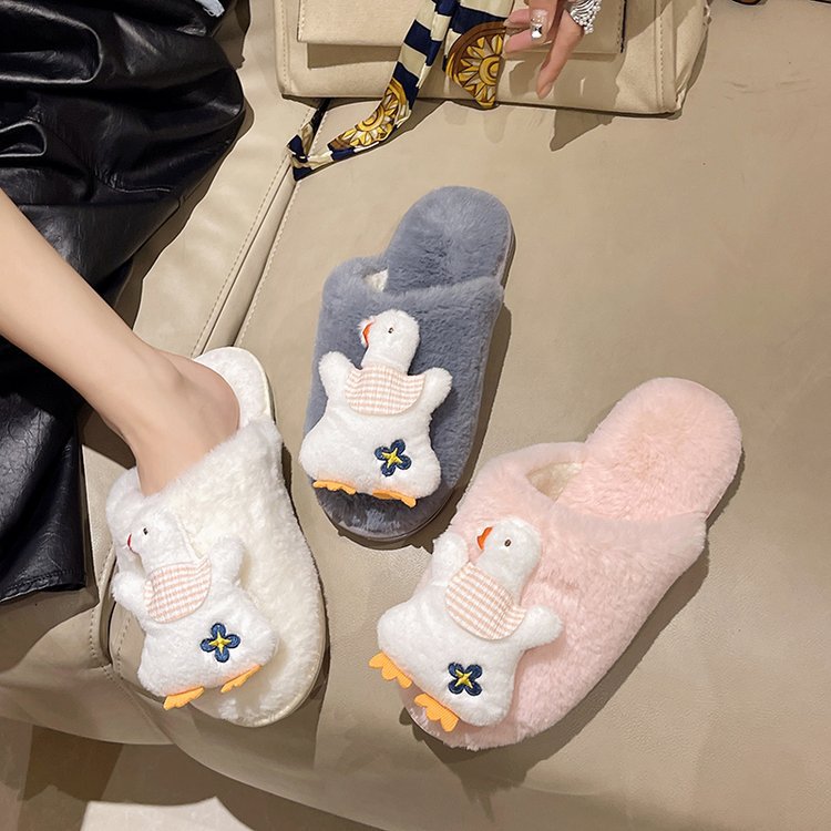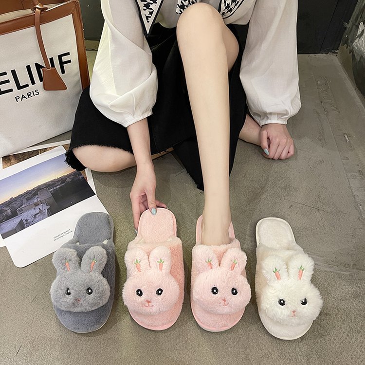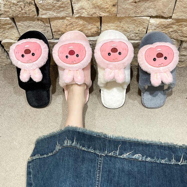 かわいいアニメのネットの赤い毛のスリッパの露指の女性の外は2024冬の新型の快適な保温の室内の綿を着て卸売りします。