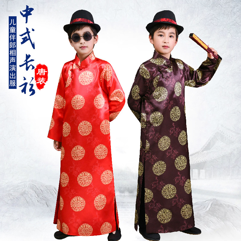 子供の中国式の民国の長いシャツの青少年の連れ合いの服の復古の長い服の旦那の唐は漫才の服の大きい羽織の公演服を着ます。