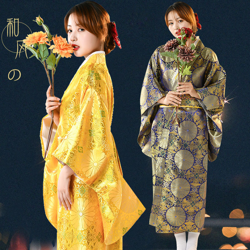 日本和風プリント着物綿箔押し家バスローブ少女コスプレ舞台diy道具演出服