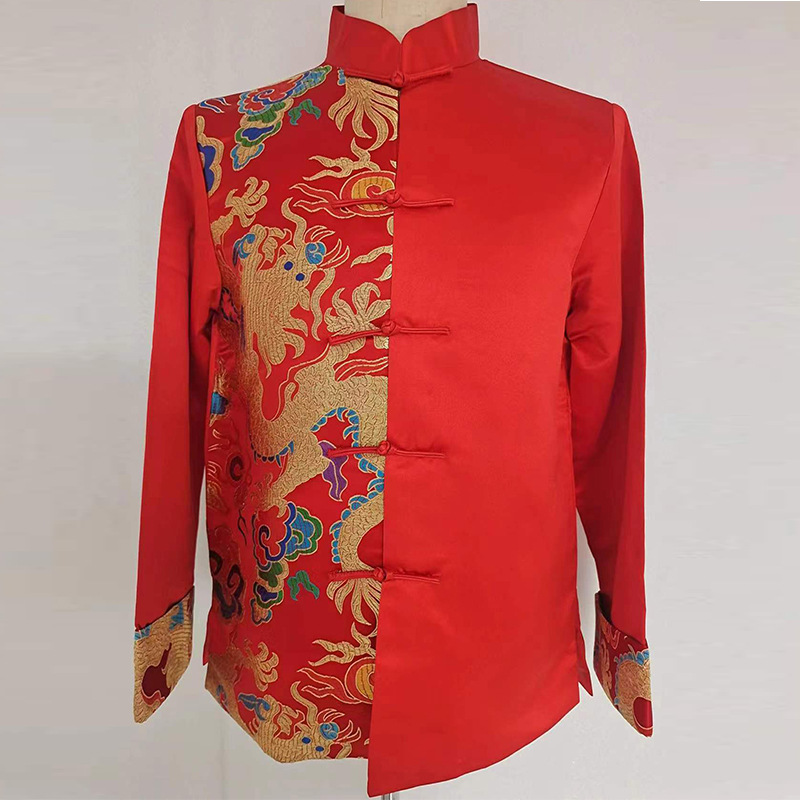 中国風立襟赤旦那中国式レトロ唐装年会公演服父の誕生日唐服祝寿服