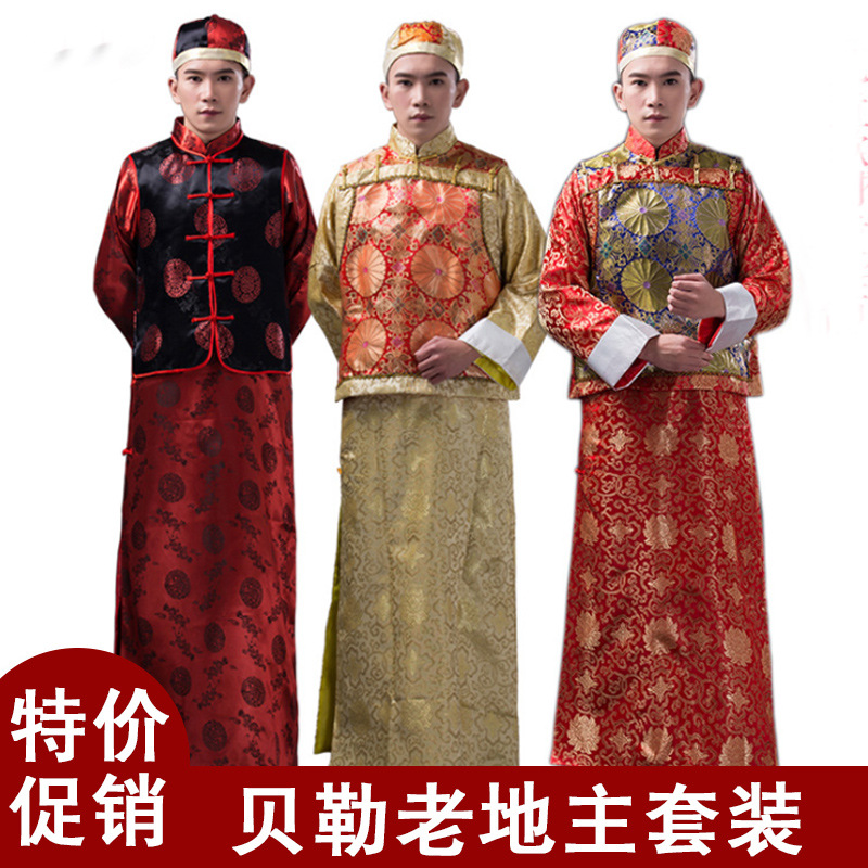 長い結婚祝いの司会者の新郎の赤い敬酒の秀イネ服の貝勒地主の時代劇の男性の出演服