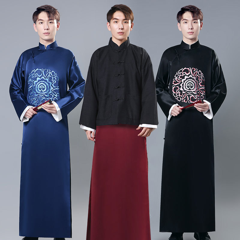中国式の連れ合いのドレスの立襟の長いシャツの刺繍の時代の民国の男性の青年の唐は漫才服の司会者の上着を着ます。
