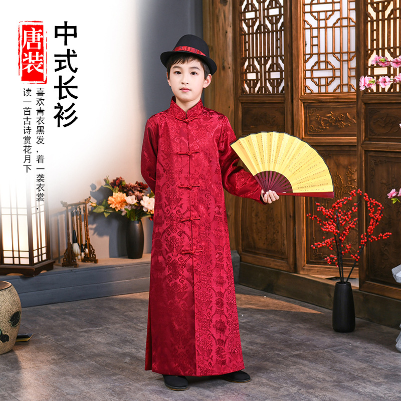 オリジナルの唐装の長いシャツの漢服の中国式の上着の経典の中国風の立襟の復古の司会者の伝統の服装の男