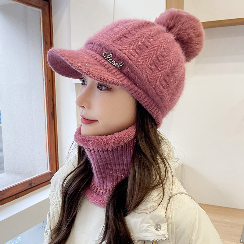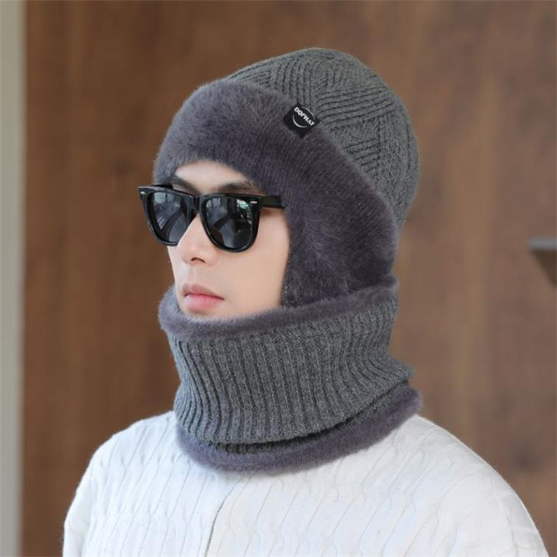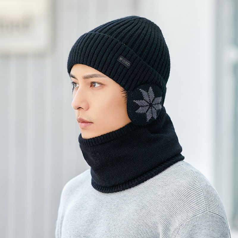帽子男性冬耳保護ベルベット厚手ニット帽アウトドア自転車保温防寒マフラーセット毛糸帽