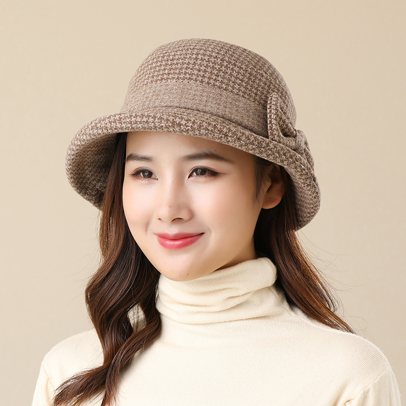 漁師の帽子の女性秋の冬の格子の中で高齢者のお母さんの帽子の保温の盆の帽子の帽子のファッションのカジュアルな組み合わせ