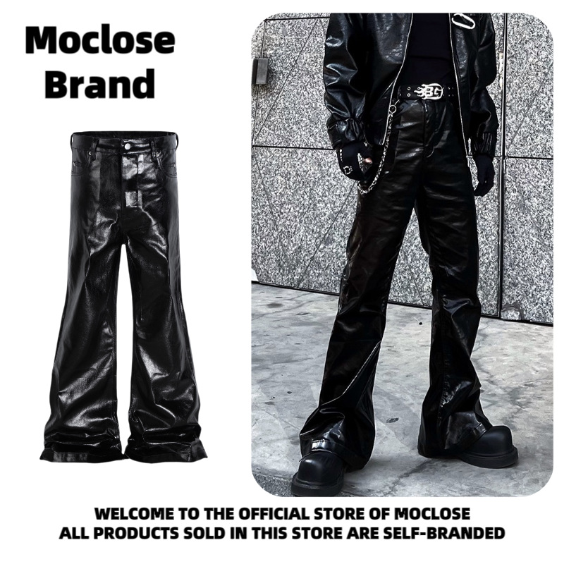 Moclose アメリカン ハイストリート ダーク コーティング グロッシー メンズ レディース トレンド ブランド スリム フィット ワイドレッグ フレア フロアレングス パンツ