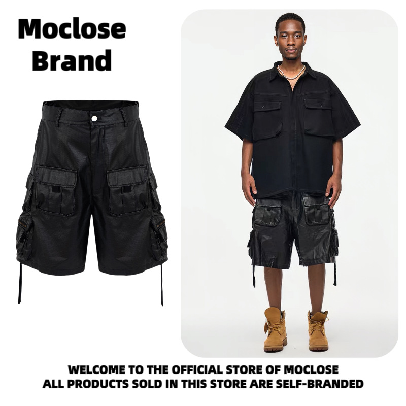 Mocloseアメリカ式高街春夏ダークブラックコーティング男女モデル多ポケットゆるい機能工装五分半ズボン