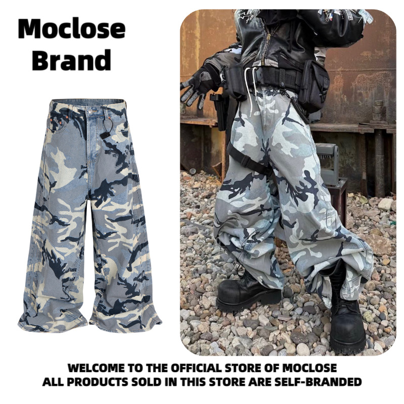 Moclose アメリカン ストリート レトロ ウォッシュ スノー カモフラージュ メンズ レディース カジュアル ルーズ シルエット ワイドレッグ フロアレングス パンツ