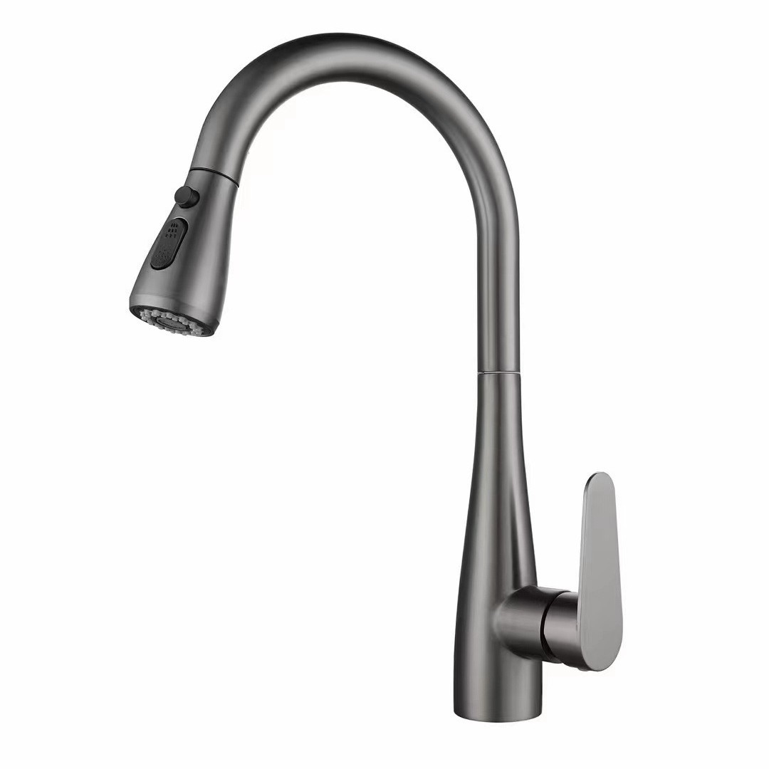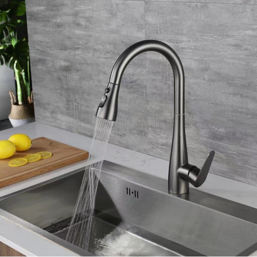 ステンレス鋼のガンアッシュ家庭用キッチン引き出し蛇口 3 機能水出口シンク蛇口