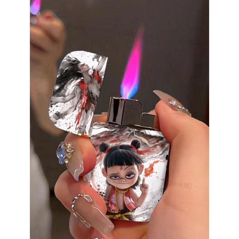アニメネザインフレータブルライターピンク炎電子ライターメタルポータブルコンパクトホットスタイルパーソナライズされたギフトボーイフレンド