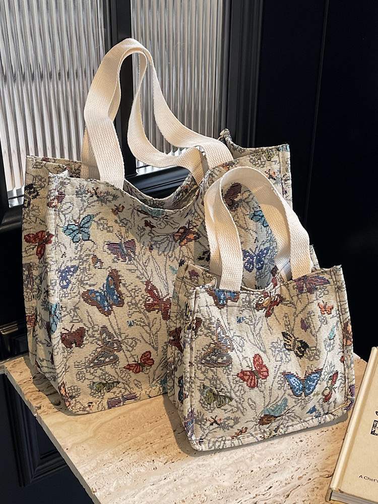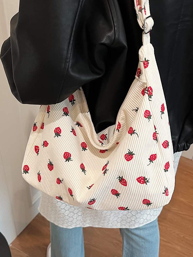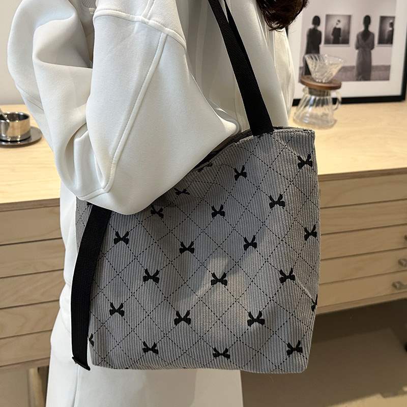 コーデュロイ蝶結びプリント2024新作ファッションファッションカジュアル洋風ショルダーバッグ手提げ大容量トートバッグ