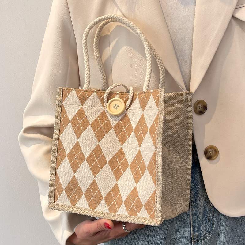 ネット紅亜麻手提げキャンバスバッグ外出弁当バッグ女性2023シンプルなファッション手はギフトバッグ麻布バッグを持っている