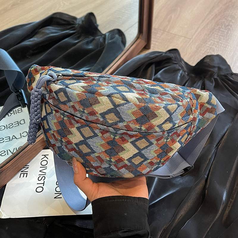 レトロ民族風散歩ランニングスポーツ胸バッグ女性2025新型感小衆斜め掛け携帯電話ウエストバッグ