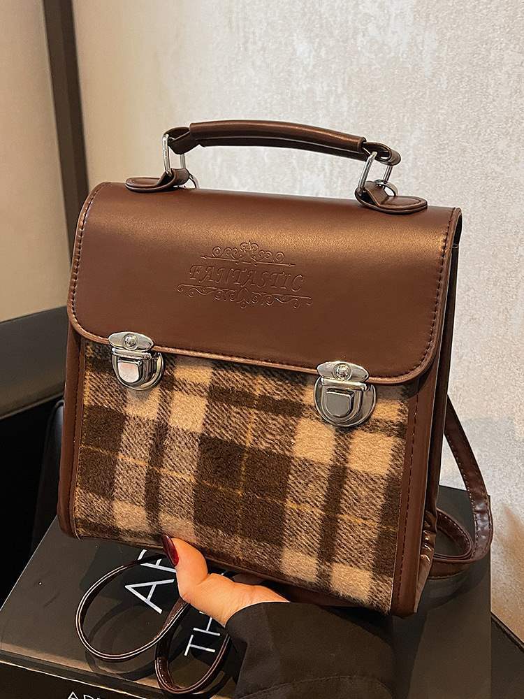 小衆のレトロなファッションの格子のリュックサックの女性の2024の新型の秋のファッションの女性のカバンの感の斜めのショルダーバッグの女性