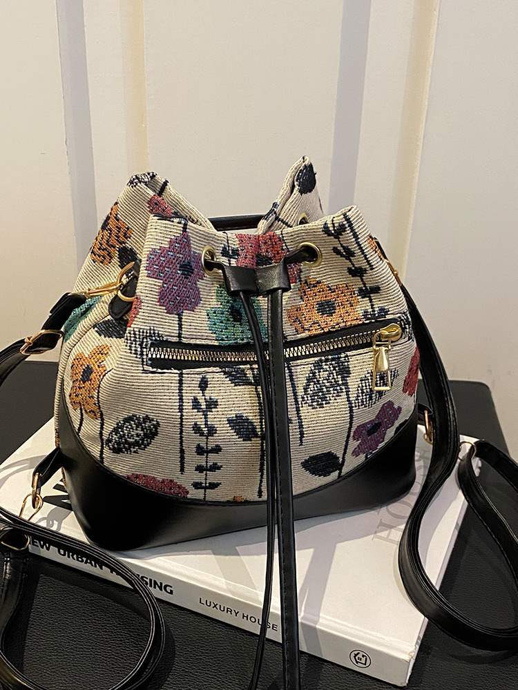 民族風の女性のカバン2024新型のファッションショルダーバッグの女性の小衆は縄のバケツを引いて洋風の百合の斜めのショルダーバッグの女性を包みます。