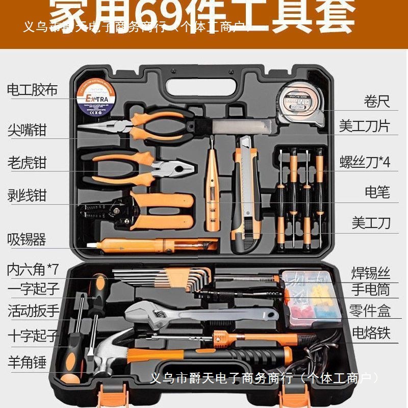 100 個家庭用ツールボックスセットレンチドライバープライヤーハンマーツール組み合わせ木工電気技師ツール