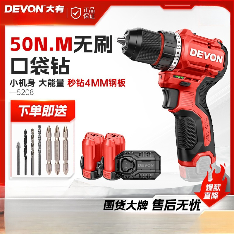 Dayou 12V ブラシレスリチウム電気ドリル 5208 ハンド電気ドリル家庭用インパクトドリル 5209 充電式ピストルツール