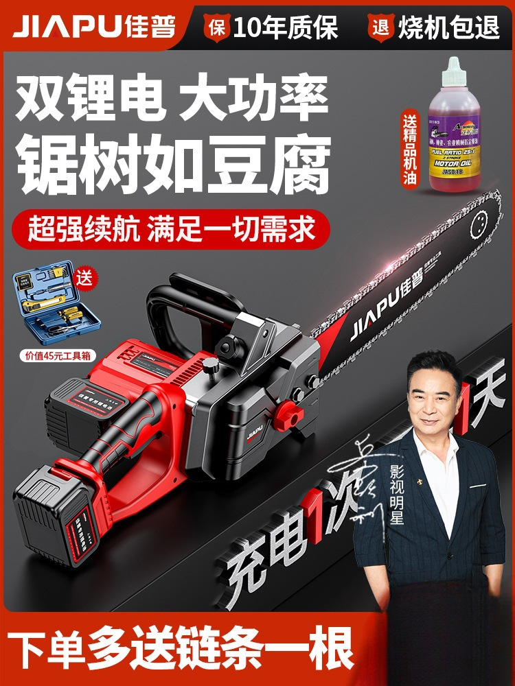 充電式電動のこぎり家庭用小型ハンドヘルドハイパワーリチウム電池大容量チェーンソー木の伐採ツール