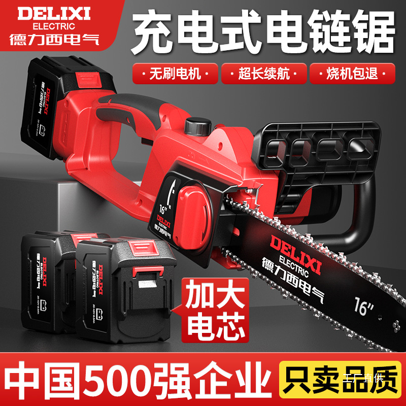 Delixi Electric 家庭用小型ハンドヘルド電動のこぎりハイパワー リチウム電池伐採のこぎり切断充電式チェーンソー