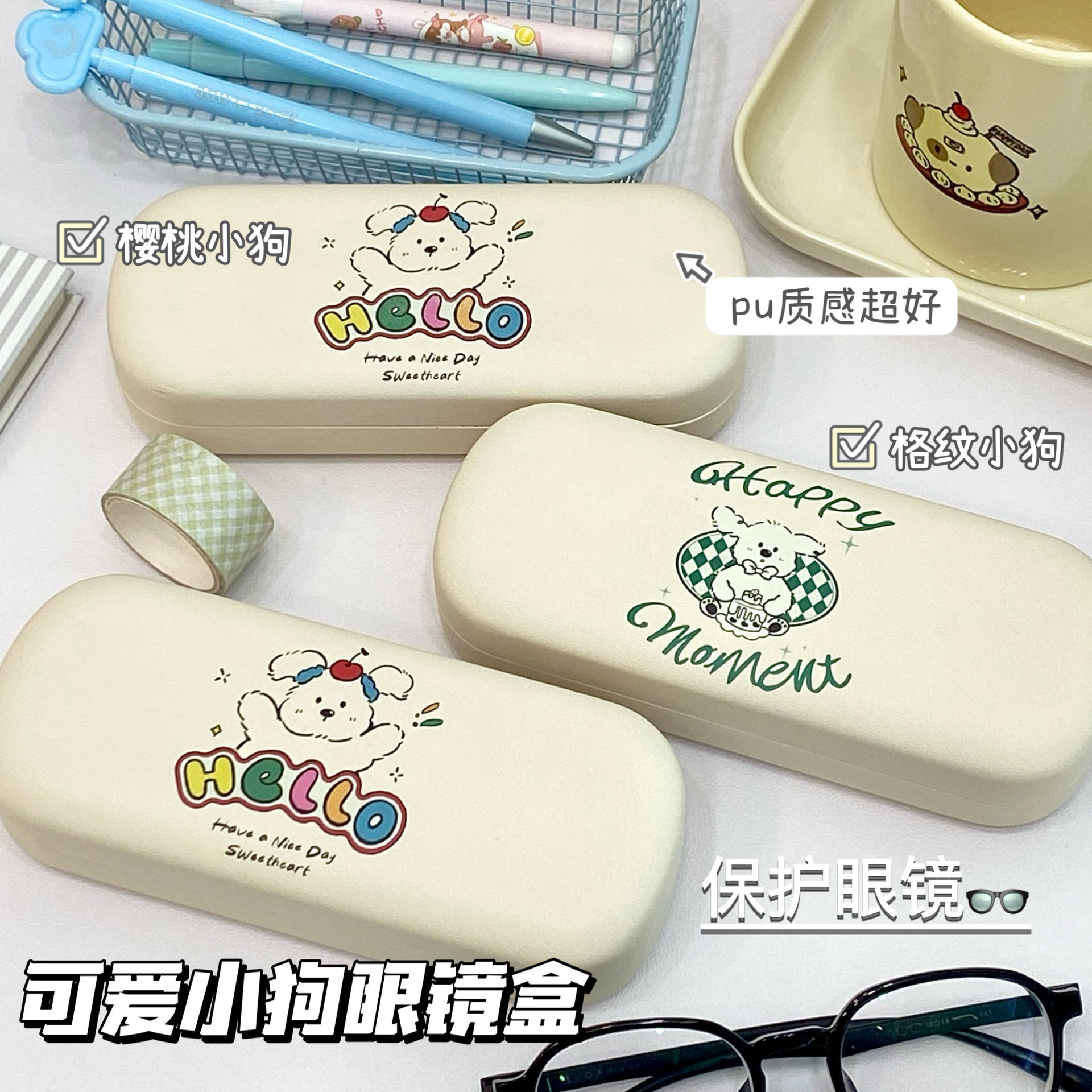 漫画の子犬の眼鏡の箱の日系puの皮革の近視の眼鏡の収納の箱の学生の携帯の眼鏡の圧力の保護カバー