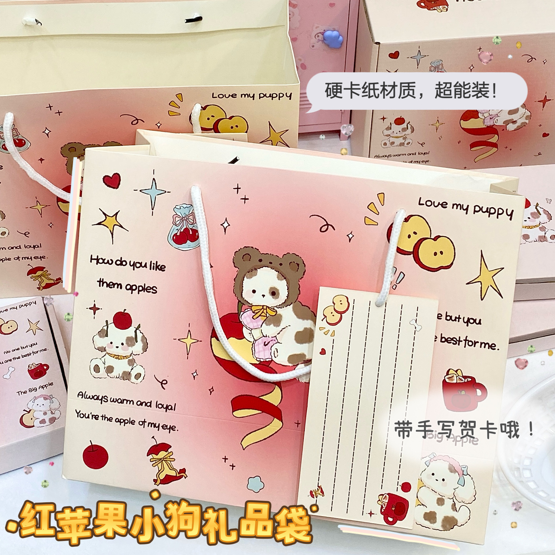 かわいい赤いリンゴの子犬のギフトバッグinsの美しい外出ショッピングの超大きい手提げ袋の誕生日プレゼントの包装袋