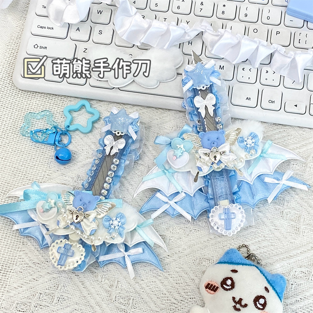 オリジナルブルー系熊完成品手作り刀【萌え熊の翼】美工刀ins開梱撮影速達刀