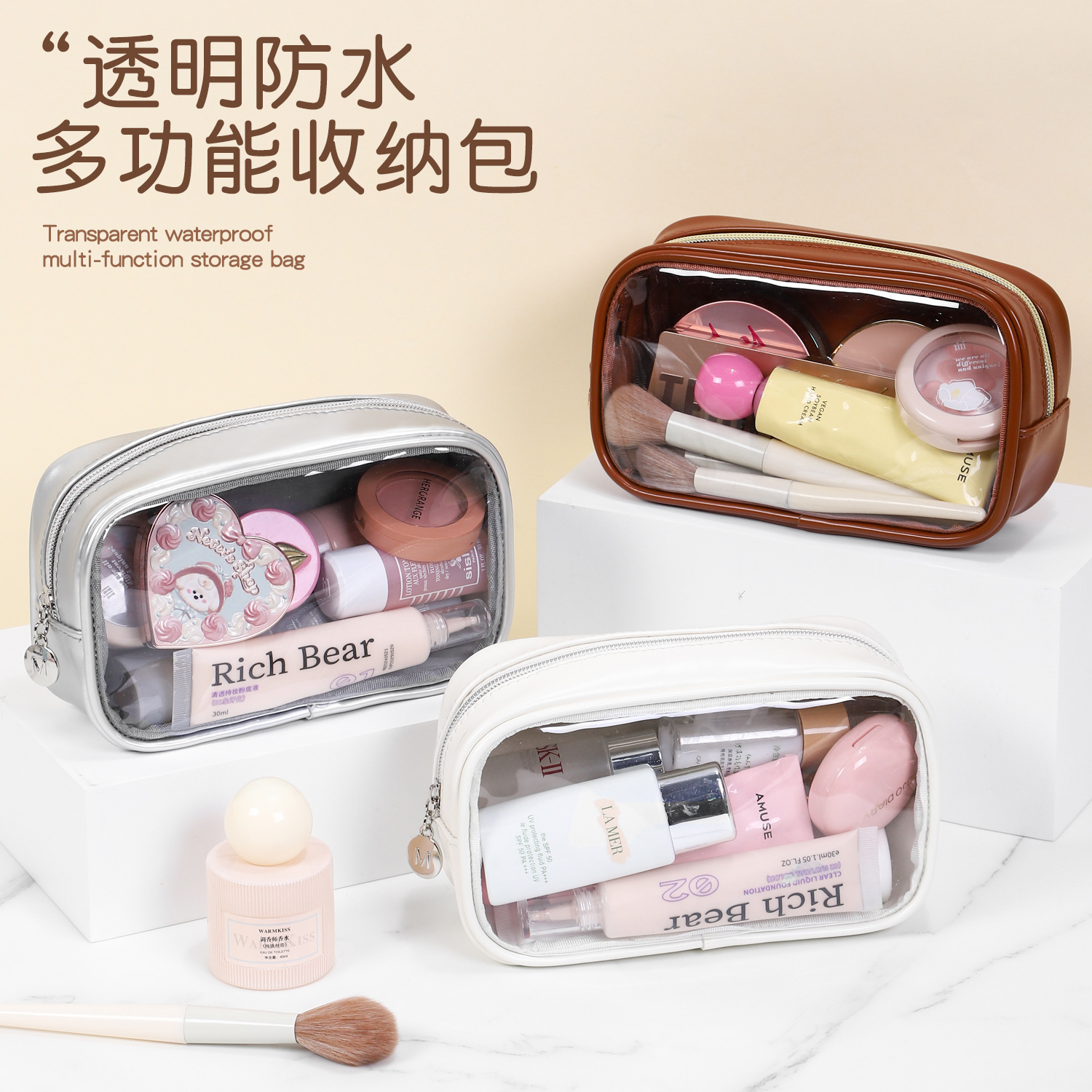 新型皮質半透明高級化粧バッグ大容量防水携帯洗面バッグ手持ち旅行収納バッグ
