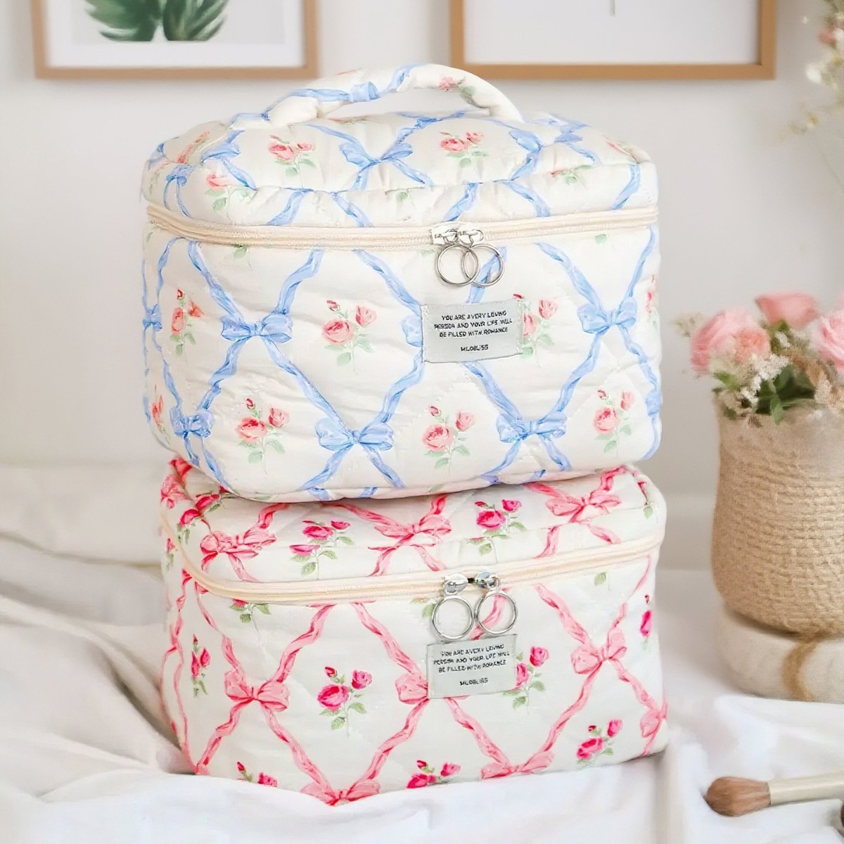 国境を越えた人気のリボン化粧品バッグ、ニッチなデザインの収納バッグ、高見えするイン、かわいい化粧品バッグ、高級感