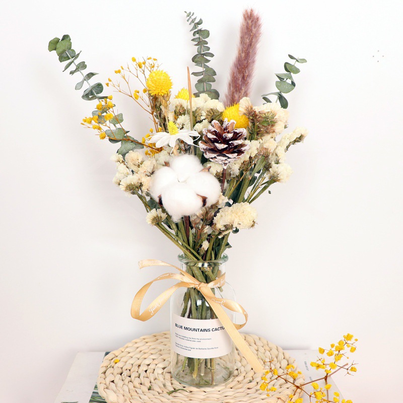 Ins风ネット赤ドライフラワーブーケ天然ローズコットンパインナッツ満天星干ユカリリビング饰り置物