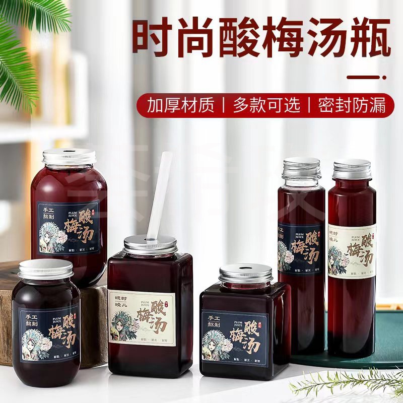 酸っぱい梅のスープのコップの使い捨てのプラスチックの飲み物の杯は厚いpetの酸っぱい梅の汁の瓶の外に出してプラスチックの瓶を包装します。