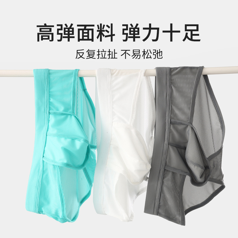 アイスシルクローライズ三角パンツ メンズ 大きなポケット U字型セクシーなメッシュ通気性快適な下着 メンズ三角パンツ