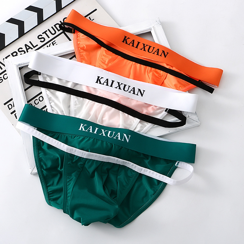 欧米の男性の双丁の三角の下着の氷の糸のセクシーな高いフォークの通気性の立体U凸の袋の青年の越境の卸売り