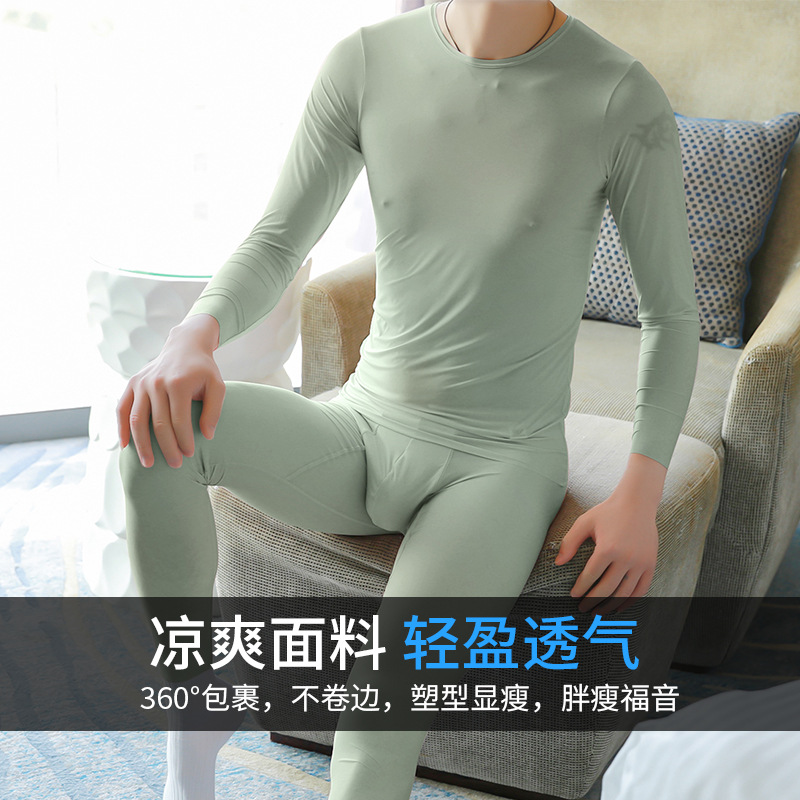 氷糸超薄男性秋衣秋ズボンセットセクシー通気速乾青年薄手シャツ保温下着男