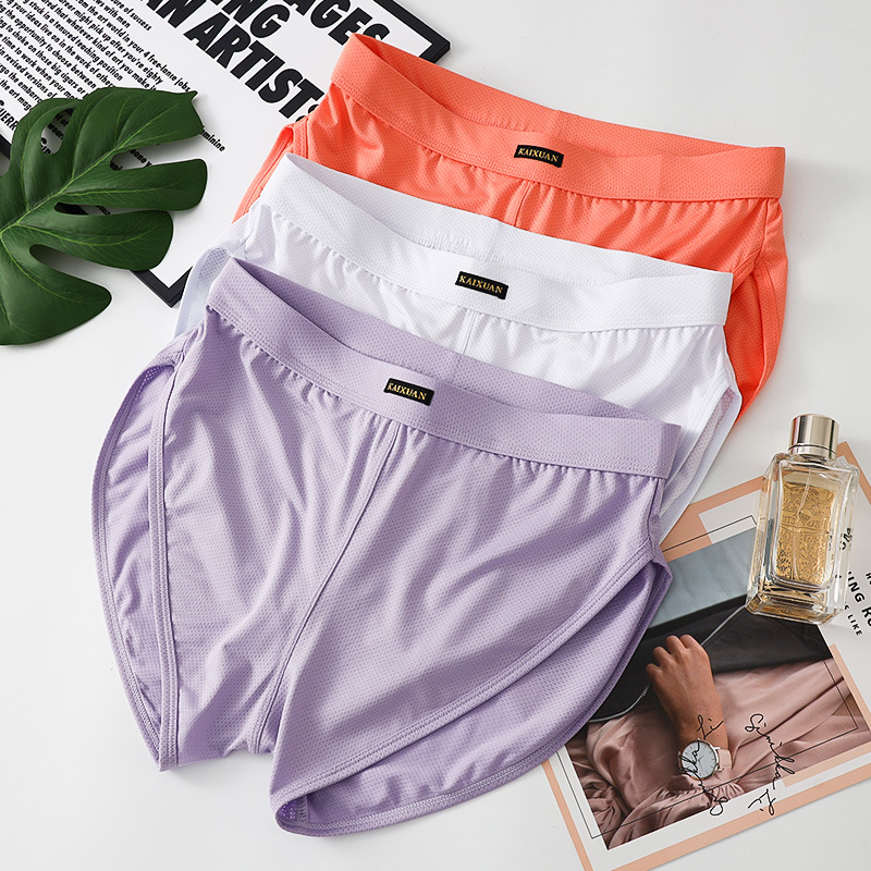 耐摩耗性脚延長バージョン男性下着アイスネット通気性メッシュスポーツ男性四隅ランニングボクサーブリーフ男性ミッドパンツ