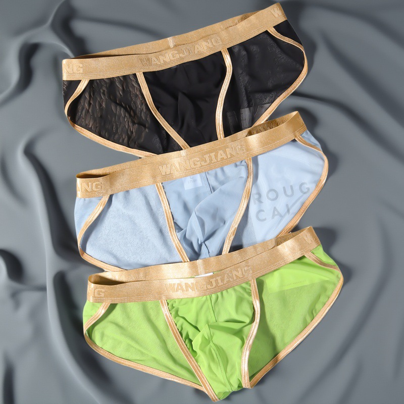 男子下着氷糸透明ネット糸純低腰セクシー下着速乾男性三角下着男性卸売り