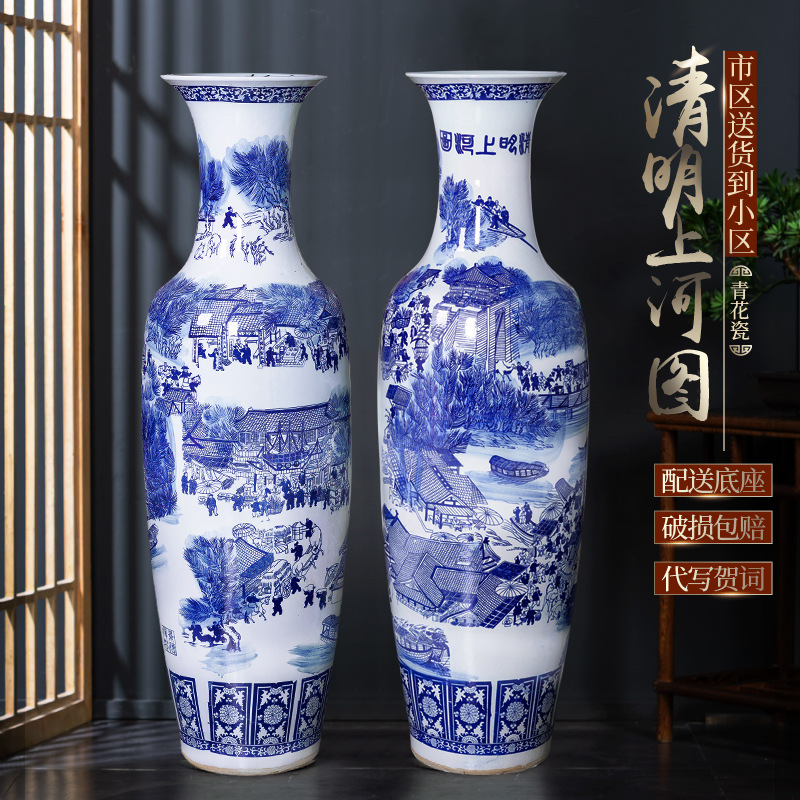 景徳鎮陶磁器手描き青花磁器模造古着地大花瓶客間装飾置物大サイズ特大開業