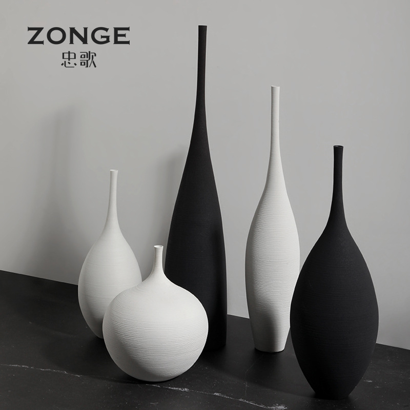景徳鎮の陶磁器の花瓶の置物の家庭の装飾品の芸術の白黒は糸の北欧の客間のテレビの箱の乾いた花の装飾を引きます。