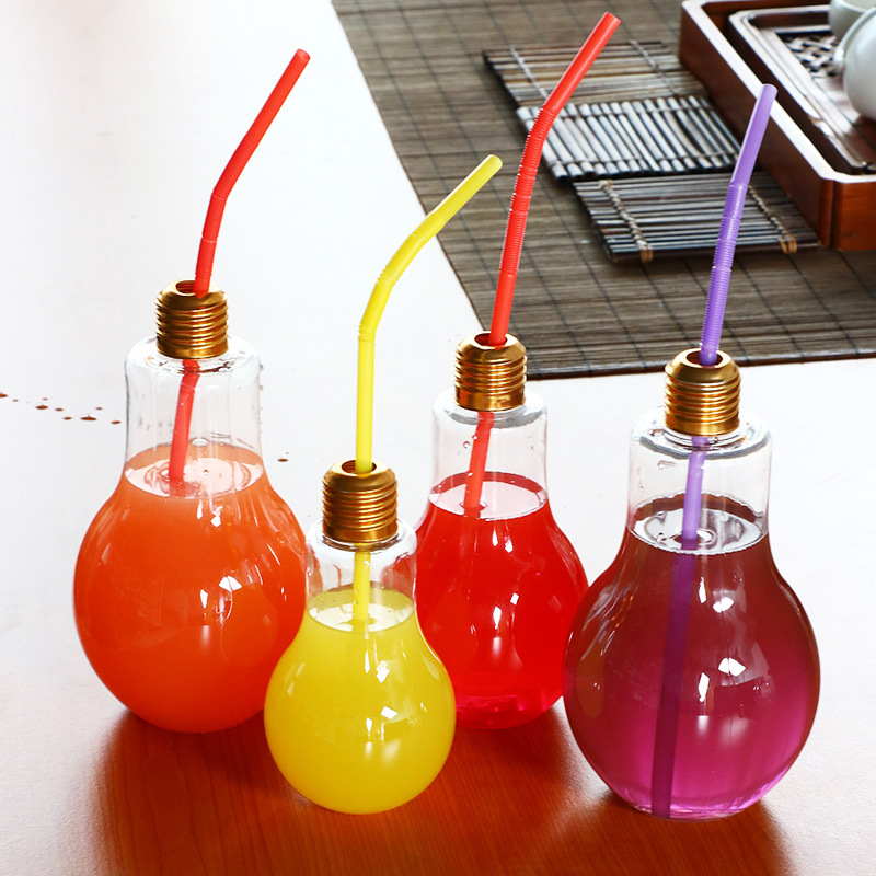 クリエイティブ新型ガラス電球飲料ジュース哺乳茶瓶ペットボトル冷たい飲み物瓶コップ蓋付き発光