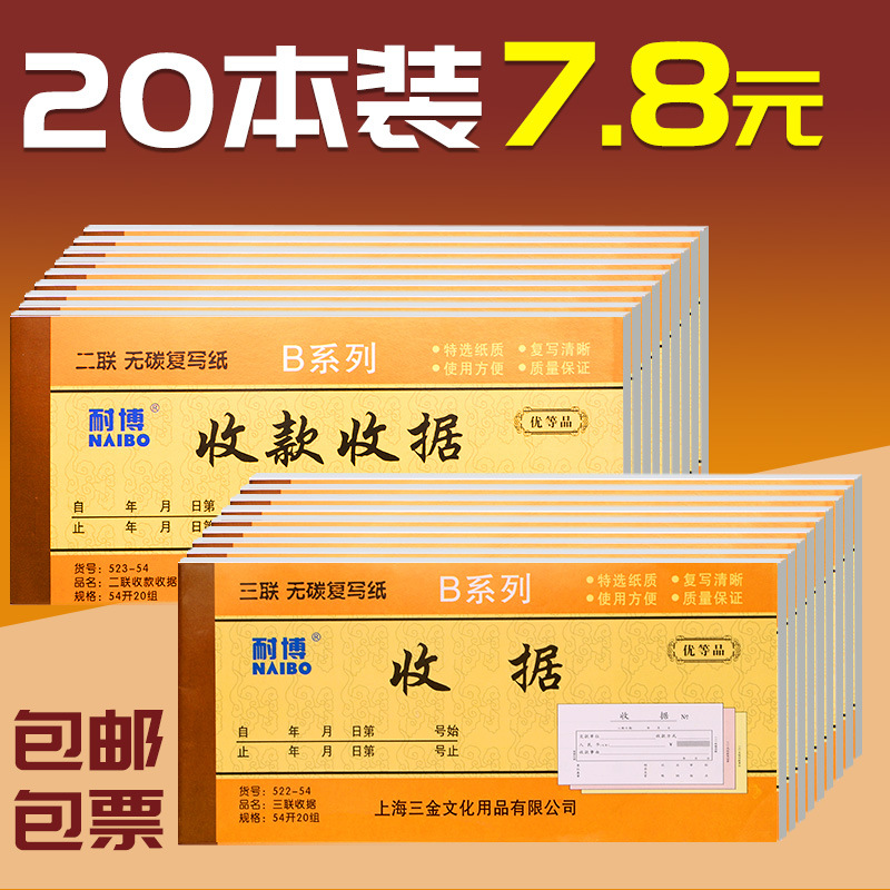 20本単連入金領収書二連三連無炭素複写2連単欄多欄領収書二連単票