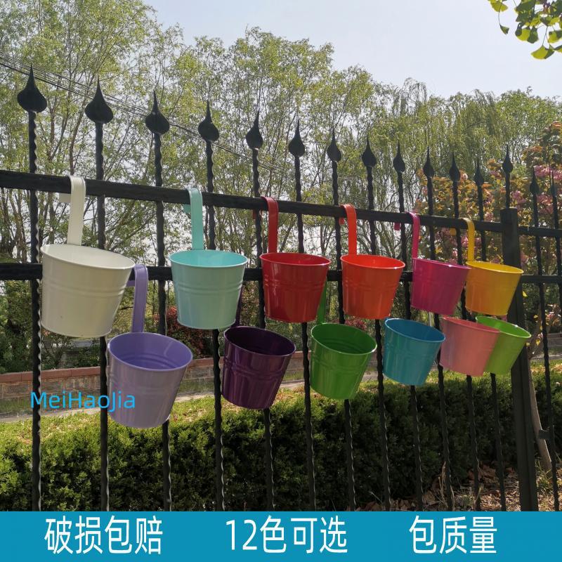 金属の大きいサイズのベランダのフックのバケツのカラーの掛け式の花のバケツの鉄のバケツのつり鉢の田園の小さい鉄のバケツは植木鉢を掛けます
