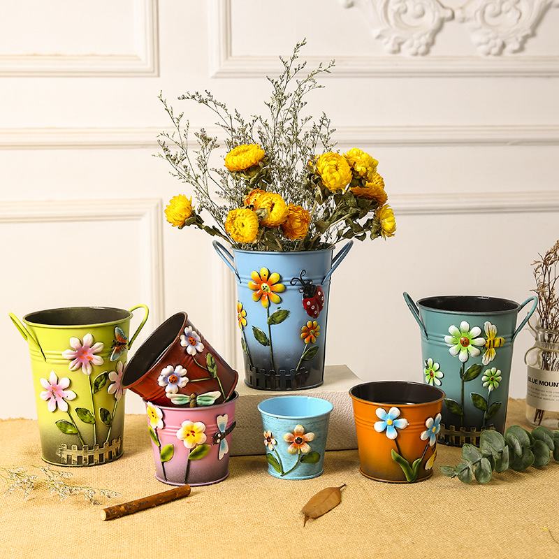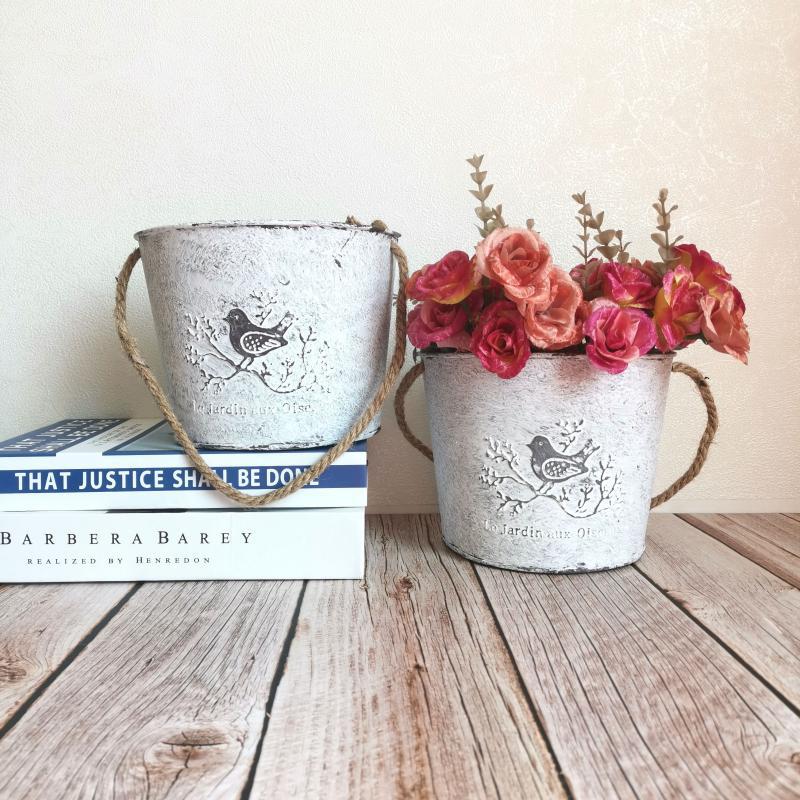 【】鉄のバケツブリキの花の鉢の花のバケツの小さい鉄のバケツの田園の植木鉢の装飾の花器の収納桶