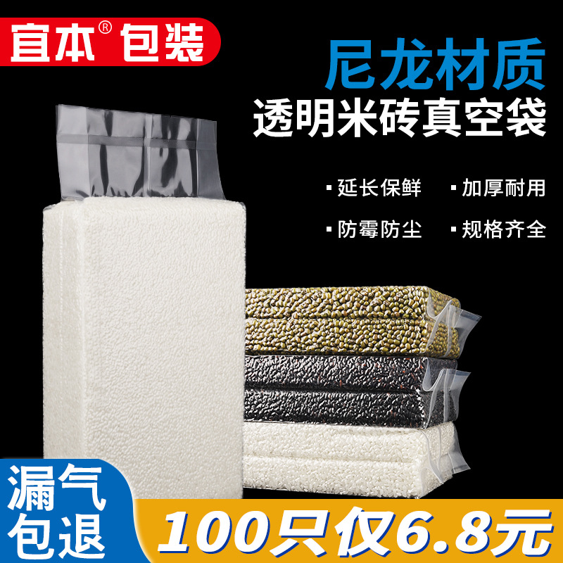 厚いナイロン米レンガ真空包装袋透明角レンガ型大米雑穀食品密封袋金型