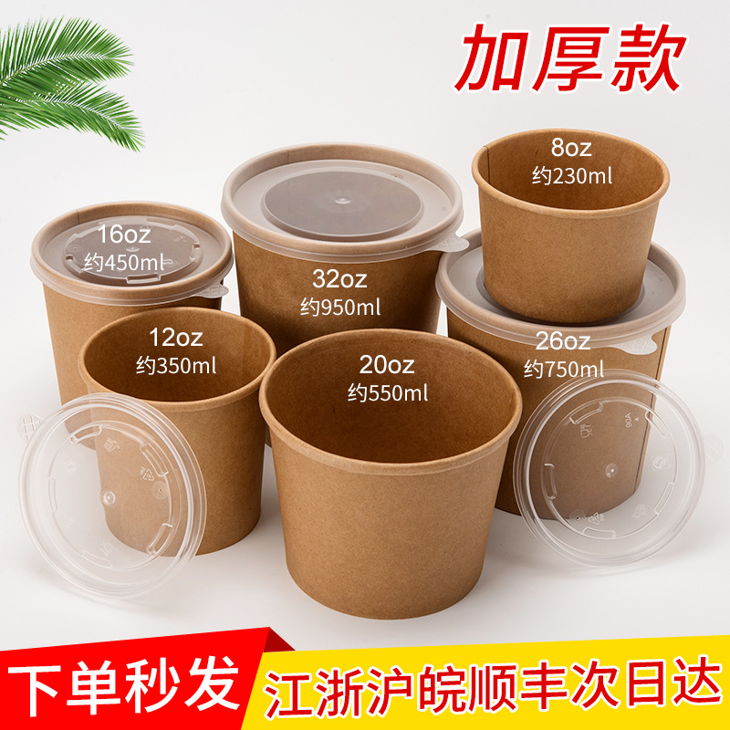 使い捨てのクラフト紙のおかゆの碗のおかゆの桶のテイクアウトの包装箱の蓋の紙の碗のファーストフードの業務用の包装箱のスープの碗