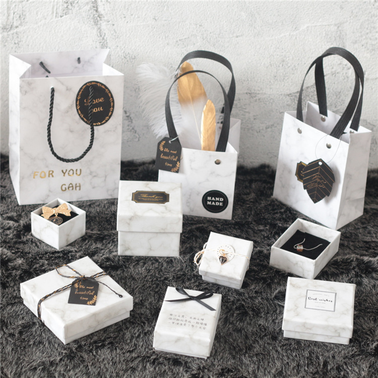 Ins风大理石ブレスレットイヤリングネックレスボックスアクセサリー収纳ボックスジュエリーボックスリング包装小さなギフトボックス