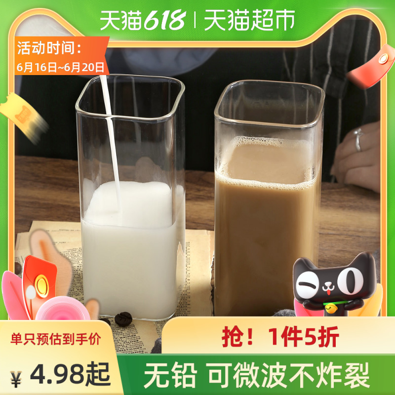 明尚徳ミルクティーガラスコップ透明角型コップ400ml緑カップ家庭用ジュース飲料牛乳カップ