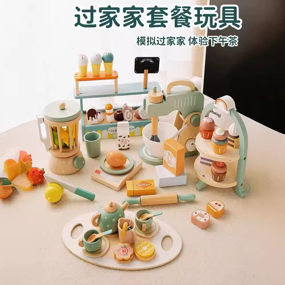 子供のシミュレーションの甘い店のアイスクリームの茶器は店の男の子の女の子のままごとの木製のおもちゃを販売します。